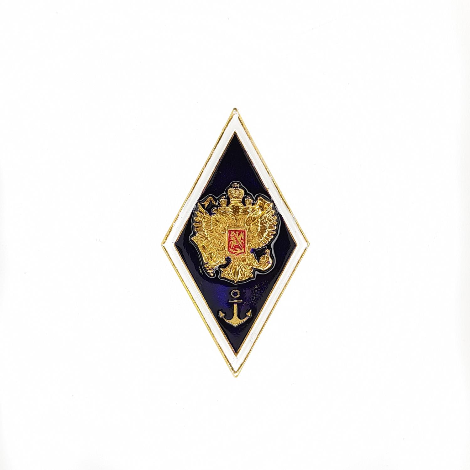 Значок Ромб Высшее мореходное образование, золотой, синий, металл - интернет магазин Полигон